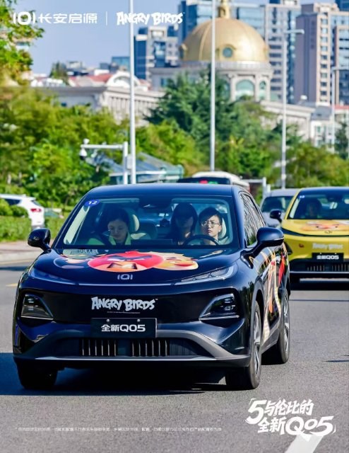 起初见到长安启源Q05时就被它那华丽而又可爱的车衣所吸引。长安启源全新QO5作为全球都市精品SUV对标全球经典游戏IP愤怒的小鸟,强势标定全新Q05全球范及青春感。愤怒的小鸟则以极简玩法的普适魅力和强视效,穿透文化与年龄的壁垒,沉淀为一种真正的、全球性的社会共识。这一次跨界合作, 既是品牌精神与IP魅力的同频共振,也是强强联合互相扩大市场影响力。这一携手合作无疑为长安启源Q05打上了高识别度的标签。