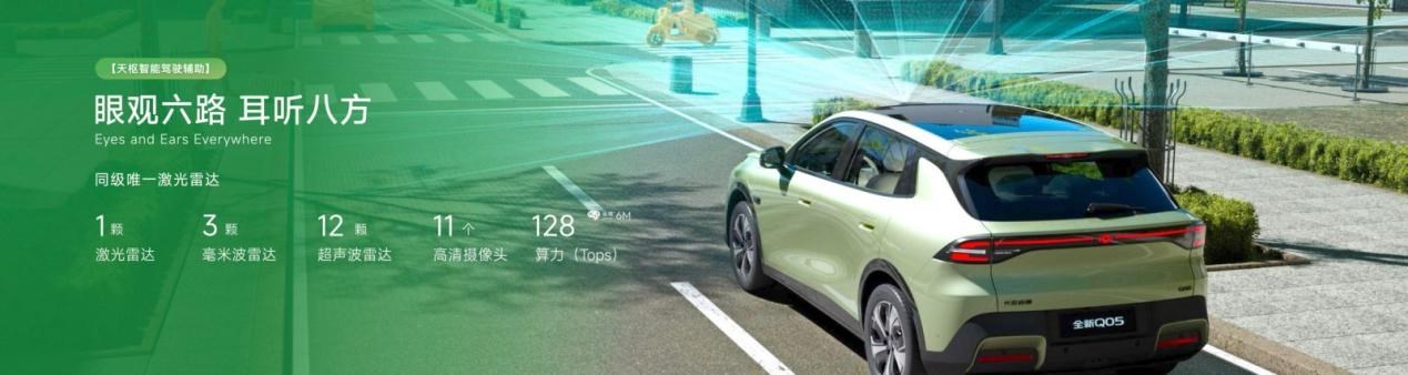 长安启源全新Q05搭载天枢智能驾驶辅助,凭借1颗激光雷达、3个毫米波雷达、12个超声波雷达、11个摄像头,构建强大感知与运算体系,实现智能驾驶辅助功能。行车时,高速领航辅助用户从容应对复杂路况,城市记忆领航贴合通勤需求;全场景泊车辅助,解决用户停车难题;自动紧急转向、制动等主动安全功能全程守护,让出行更安心。